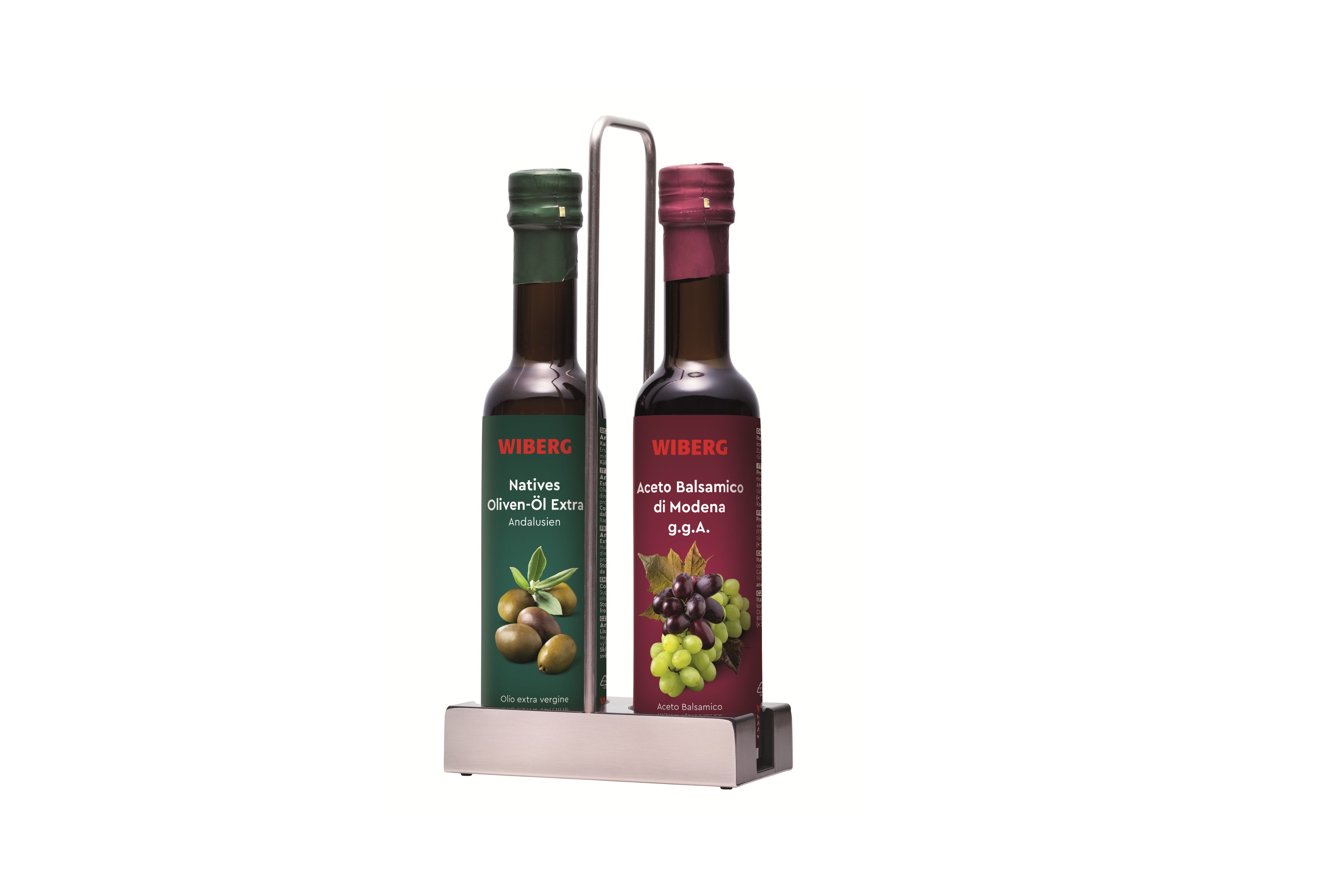 Wer zum WIBERG Premium-Öl in der dunkelgrünen Flasche greift, entscheidet sich für ein erstklassiges Produkt höchster Qualität. Unsere kaltgepressten pflanzlichen Öle stecken voller Geschmack und wertvoller Inhaltsstoffe. Diese edlen Tropfen entfalten ihr Potenzial quer durch das Menü – von der Vorspeise bis zum Dessert. Von aromatischen Ölen mit charakteristischen Kräuter- und Gewürznoten über ausgewählte Nuss-Öle bis hin zu klassischen Oliven-Ölen aus verschiedenen Regionen steht eine breite Palette hochwertiger Produkte zur Auswahl. Tipp: Die kongenialen Partner Essig und Öl machen bei Tisch in der Menage eine besonders gute Figur.