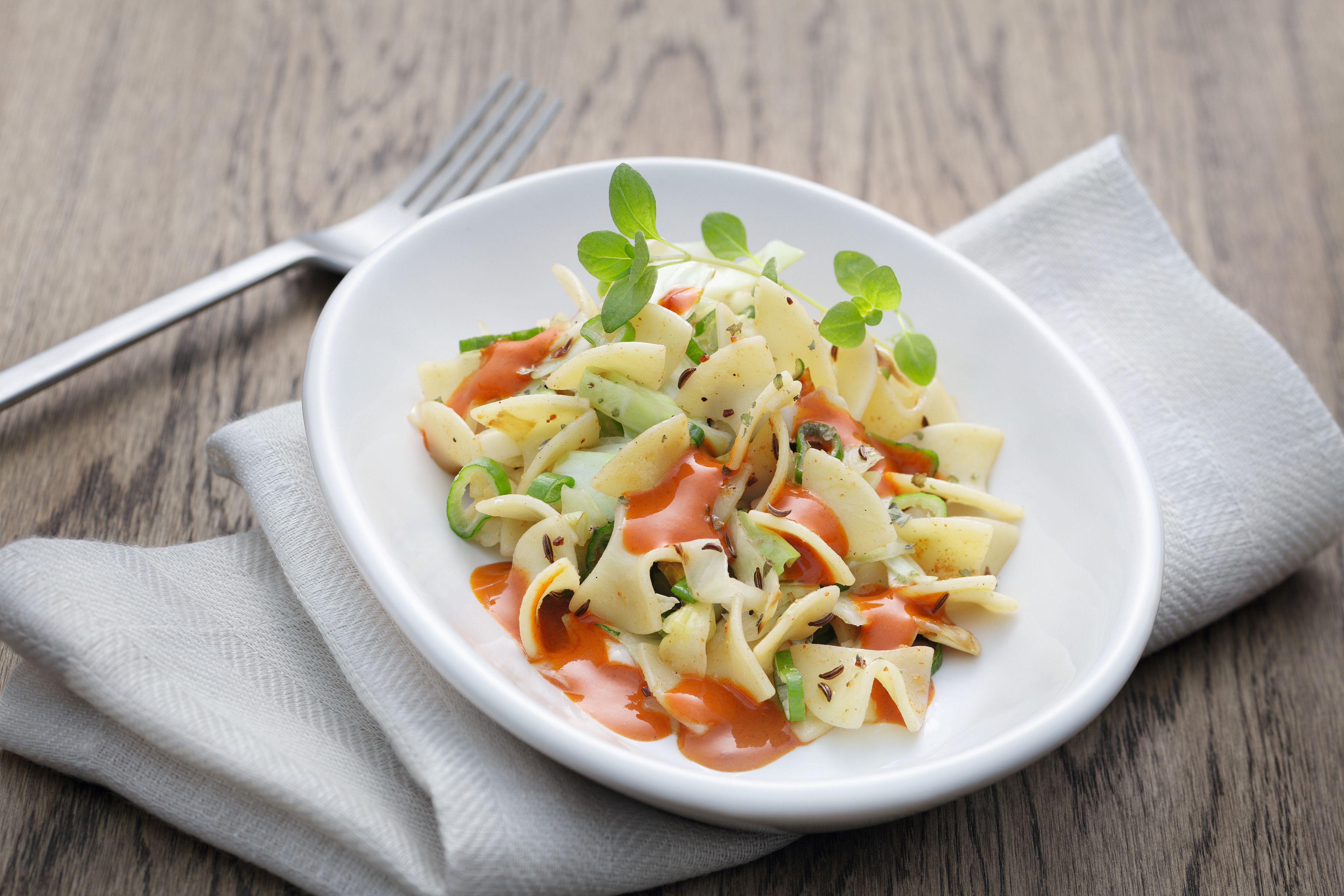 Weißkraut in Oliven-Öl braten und mit Schweins-Knuspri kräftig würzen. Fleckerlnudeln und Röstzwiebel zugeben und kurz mitbraten. Zum Schluss mit Petersilie, Majoran, Speck Würzmischung und Vital-Gemüse-Bouillon abschmecken.